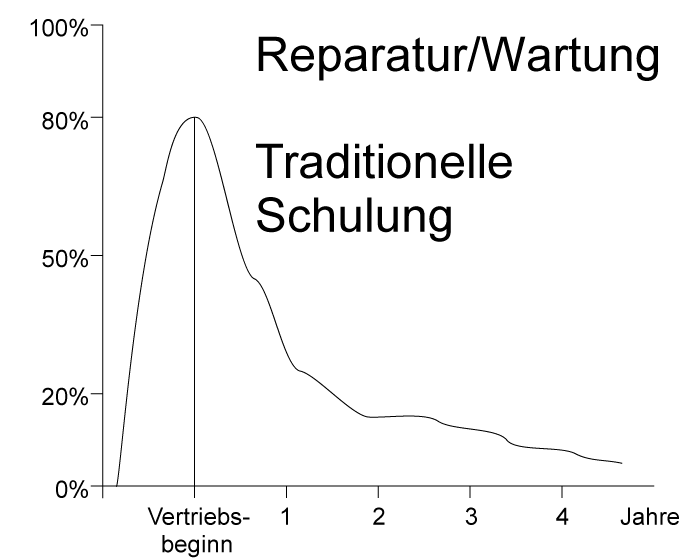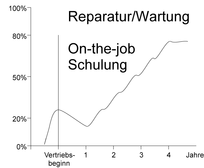 Dazu der Vergleich der Lernkurven für die Reparatur/Wartung am Beispiel einer Produkteinführung: